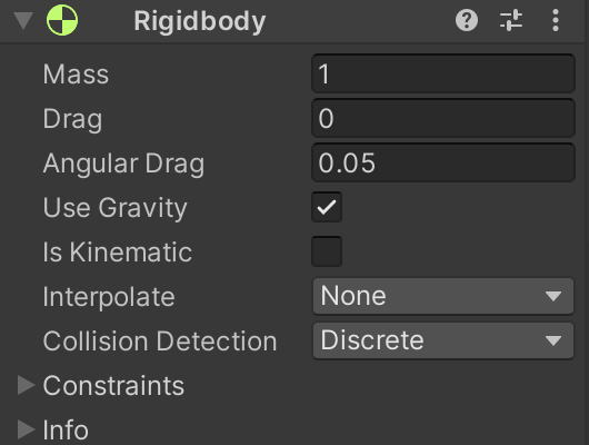 ๋ณ์๋ก Rigidbody ์ปดํฌ๋ํธ๋ฅผ ์ฌ์ฉํ๋ ์์