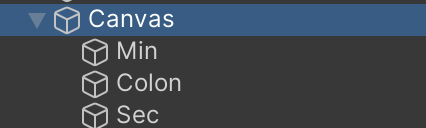 UI > Canvas ๋ก ์บ๋ฒ์ค UI๋ฅผ ์ถ๊ฐํ๊ณ ๊ทธ ์์ ํ์ด๋จธ๊ฐ ๋ Text UI๋ฅผ ์ถ๊ฐํ๋ค.