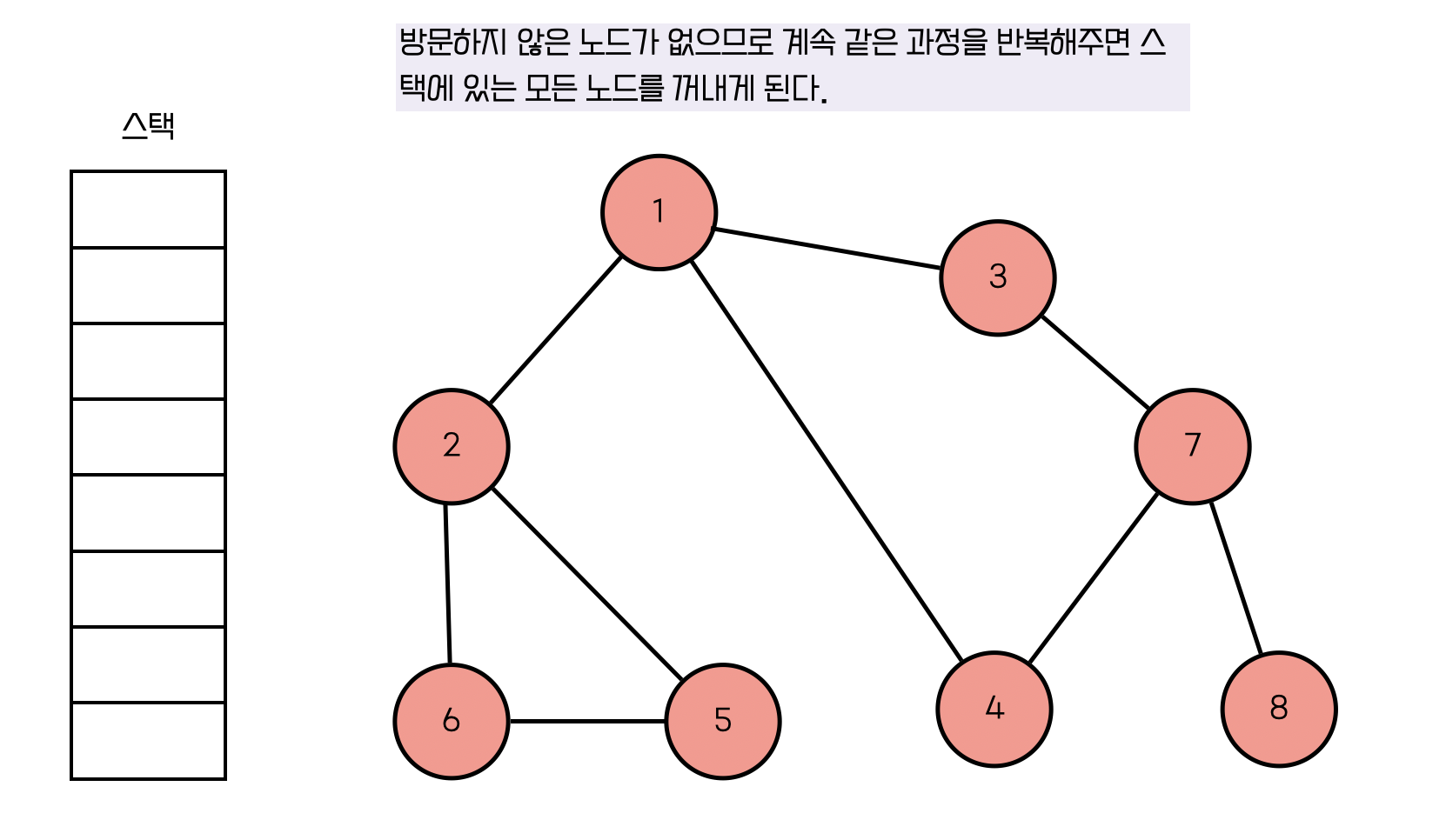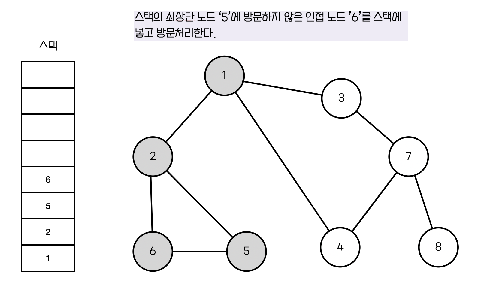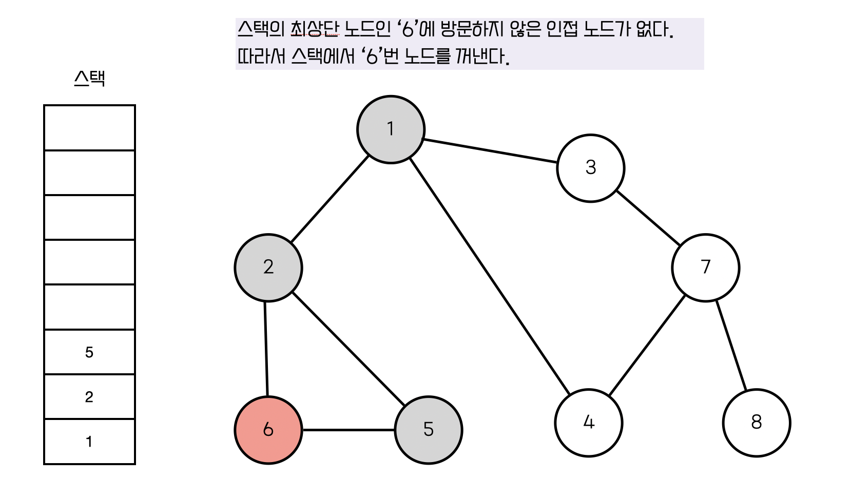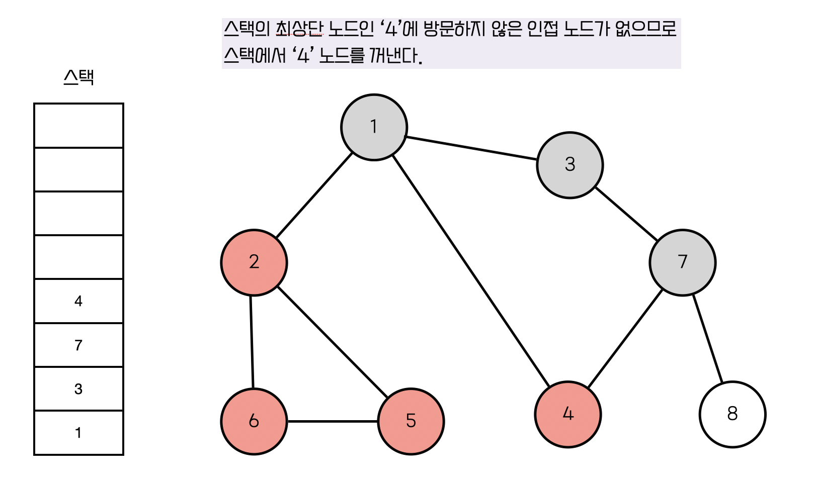 (2) ์คํ์ ์ต์๋จ ๋ ธ๋์ ๋ฐฉ๋ฌธํ์ง ์์ ๋ ธ๋๊ฐ ์๋ค๋ฉด ๊ทธ ์ธ์ ๋ ธ๋๋ฅผ ์คํ์ pushํ๊ณ ๋ค์ ๋์๊ฐ ๋ค๋ฅธ ๋ ธ๋๋ฅผ ๋ฐฉ๋ฌธํ๋ค.