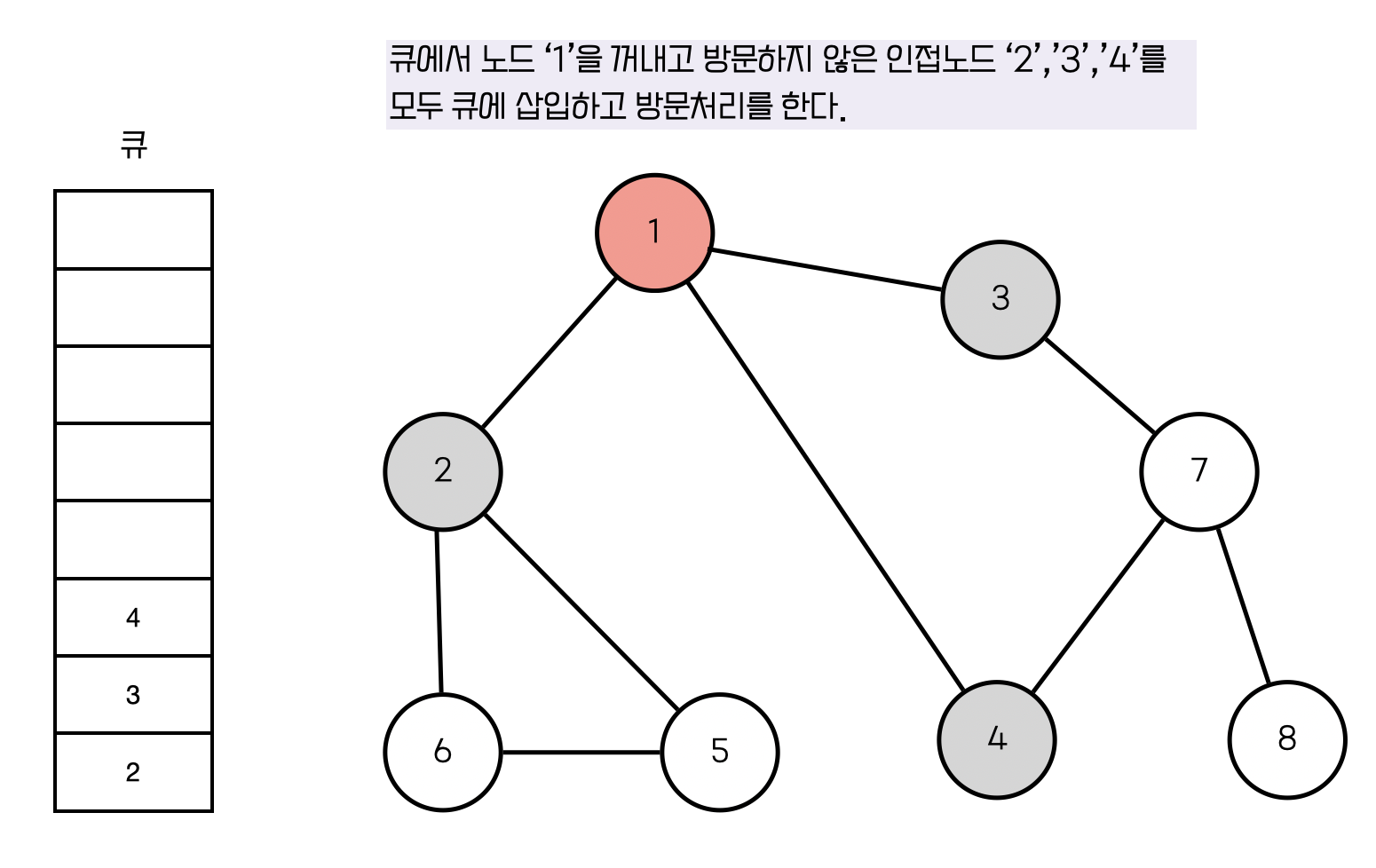 ๐ ์ธ์ ํ ๋ ธ๋๋ฅผ ๋ฐ๋ณต์ ์ผ๋ก ํ์ ๋ฃ๋ ์๊ณ ๋ฆฌ์ฆ์ ํตํด ๊ตฌํํ๋ฉด ์์ฐ์ค๋ฝ๊ฒ ๋จผ์ ๋ค์ด์จ ๊ฒ์ด ๋จผ์ ๋๊ฐ
